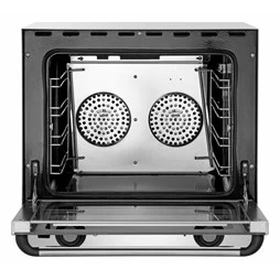 This full size convection/bake off oven comes supplied with 4 baking sheets. Manufactured to a great standard in top quality stainless steel, this top quality full size 57 litre convection oven will give a high level of performance, reliability, style and comes with an outstanding value for money price as standard. The twin rear fan assisted convection design circulates heat around the oven for even temperatures, with no cold spots, making it ideal for both cooking and baking.