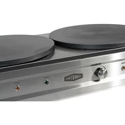 The Double Electric Crepe Maker from Contender has 2 adjustable temperature gauges and is fitted with an automatic thermostat to avoid overheating.