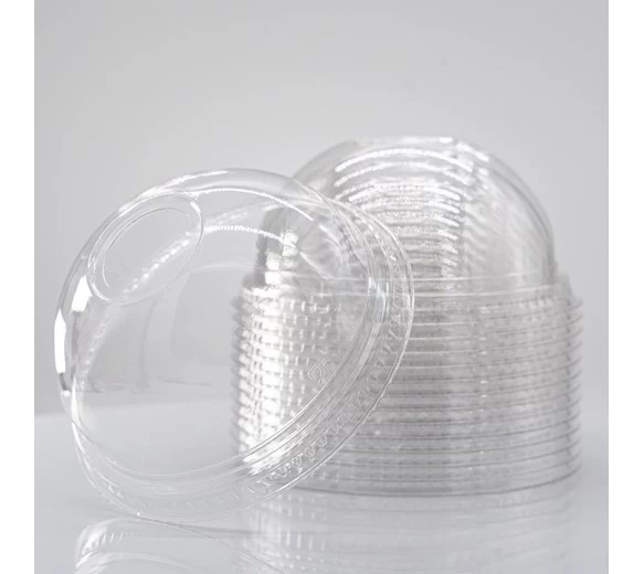 Seal your smoothie with the PET Plastic Dome Lid with Hole.