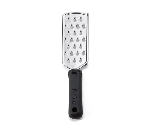 Grate ingredients with ease, thanks to this fine FirmGrip hand-held grater. Made from high quality stainless steel, the grater effortlessly shreds through ingredients to speed up your preparation times. An essential in any commercial kitchen, this narrow blade grater is ideal for everything from cheese to chocolate.