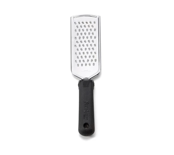 Grate ingredients with ease, thanks to this fine FirmGrip hand-held grater. Made from high quality stainless steel, the grater effortlessly shreds through ingredients to speed up your preparation times. An essential in any commercial kitchen, this narrow blade grater is ideal for everything from cheese to chocolate.