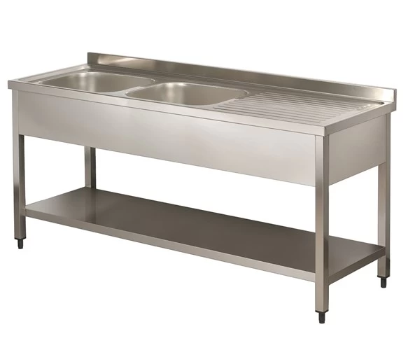 This top quality Italinox 1600mm Twin Bowl Stainless Steel Sink with Right Hand Drainer is designed to give outstanding performance day after day in all, busy restaurant and catering establishments, or for anyone needing a double bowl sink.