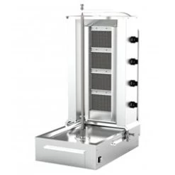 It has the preferred bottom mounted motor / rotating turntable and can be totally disassembled for cleanliness and ease of use. Other great features are an adjustable meat holder to allow you to adjust the distance between the kebab skewer and the heat burners and a flame failure device.