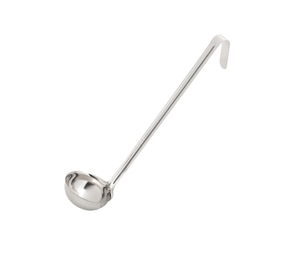 Whether you’re measuring, portioning, or simply scooping, this 4oz ladle is the perfect utensil for the job! Not only is it made of Stainless Steel, but it is fashioned out of a single piece, so cleaning is easier than ever. With a built-in hook at the end of the handle, it’s designed to hang on the side of a pot or on a rack for simple storage.