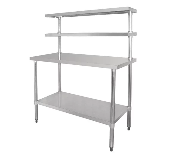 This top quality 1500mm wide stainless steel Food Prep Station bench table with Overshelves is designed to give outstanding performance day after day in all, busy restaurant and catering establishments, nursing homes or for anyone needing a great value stainless steel Prep Station / Bench Table