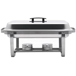 This top quality Quattro chafing dish set comprises of 4 x full size 1/1 chafing dishes complete with lids and fuel holders. These great value units bring incredible value for money to everyday caterers, whatever the type of establishment you have. Designed to give outstanding performance, day after day, in all circumstances. The large full size 9 ltr 1/1 GN size chafing dish is great for keeping large quantities of popular items warm and ready to serve. Manufactured from stainless steel, the 1/1 gastronorm sized chafers come complete with water pan, 9 litre food pan, cover and two fuel holders. The lid support is positioned between the frame and water pan, allowing the lid to rest behind the long side. The lid has a cool touch black nylon handle. This fantastic four pack set offers incredible value for money and is brought to you at an unbeatable price. Extremely easy to clean, this four pack chafing dish set is an outstanding buy.