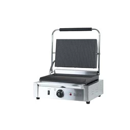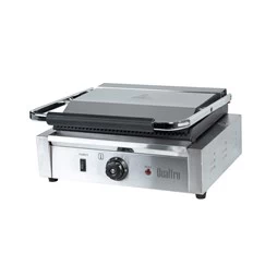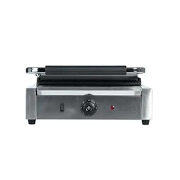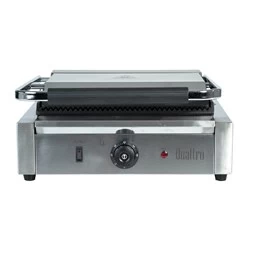 Get your grill on with the Quattro Heavy Duty Large Single Contact Panini Grill with Ribbed Top and Bottom Plates.