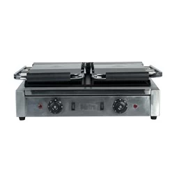 The flat bottom plate works as a griddle too depending on what you’re cooking. Plus, the ribbed top plates allow for a classic grilled experience. This offers a flexible performance that is especially ideal for cafes and outdoor catering.