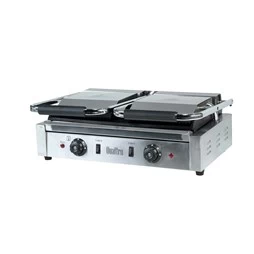 This large panini press has two separate top ribbed cast iron plate presses. Therefore, you can use the full contact grill or stick with just one side depending on your daily requirements. This also makes the item more energy efficient as you can stick to using a single side of the grill. It’s a benefit as you won’t have to heat up a double grill to only use a small surface area.