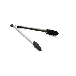 Locking tongs combine the convenience of heat-resistant silicone tips with the durability of 0.8mm Stainless Steel. Each set of tongs is heat resistant up to 450°F (232 °C), making them perfect for use in grilling, baking and hot food holding. When finished using, simply pull the locking tab for space-saving convenience.