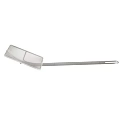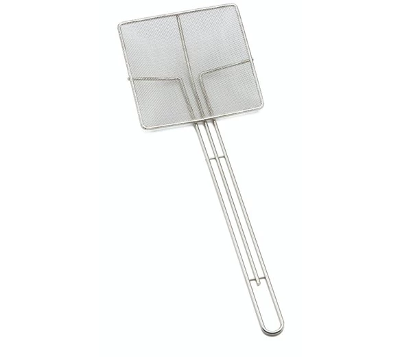 Quickly and efficiently skim the surface of cooking liquids with this 34cm square wire skimmer! Features a long handle to keep hands away from hot liquids, this skimmer is made of nickel-plated spiral wire that’s easy to clean.